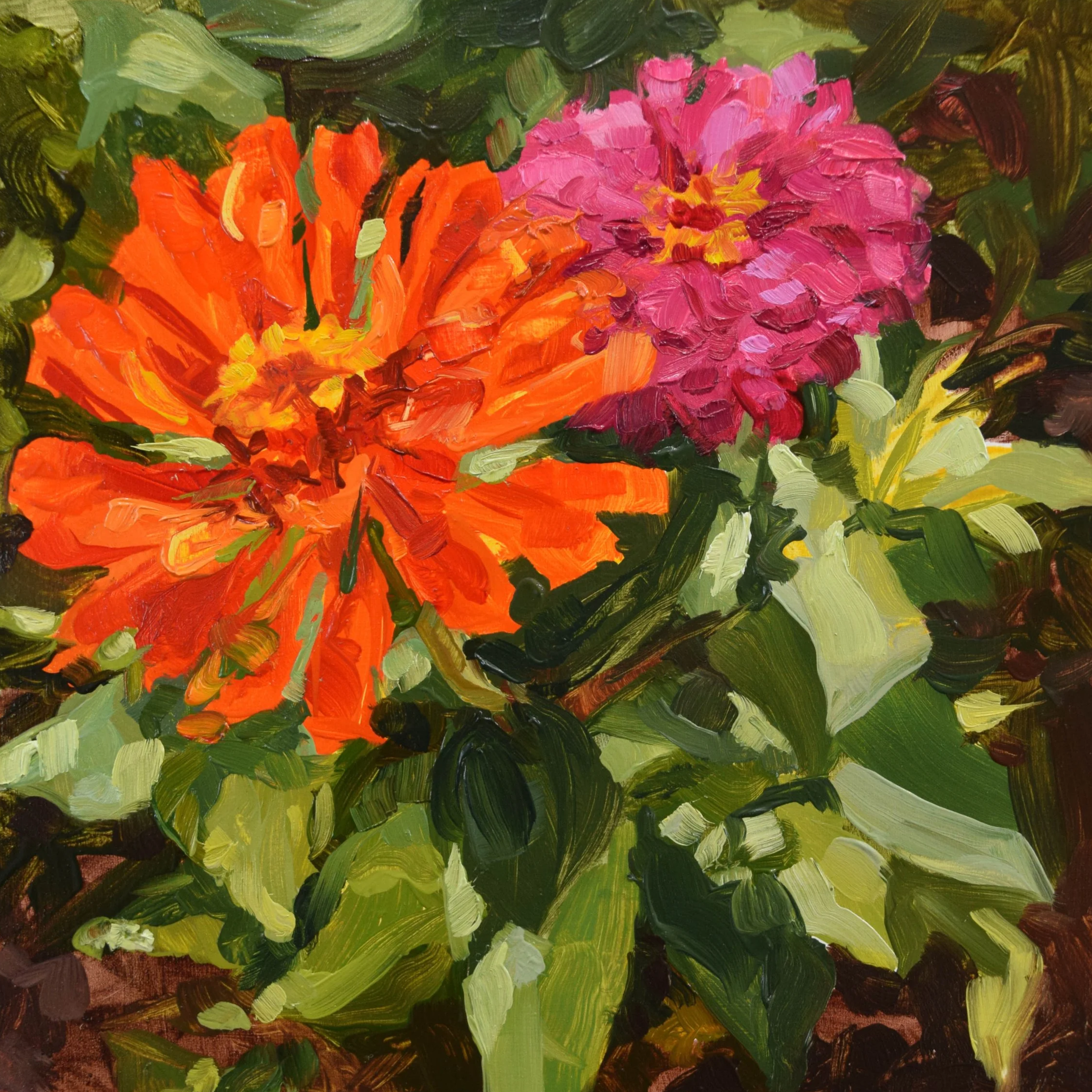 My works are that of a personal nature, drawing from dual roles as artist and mother. Playing with opaque and transparent moments of paint, I mimic the tensions between these two lives, reflecting its labor and lush result with the well-tended wildness of garden growth. My paintings are a fragmented, disrupted environment of color that mirrors my own anxieties, triumphs, and missteps that inevitably take place while caring for what you love.